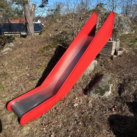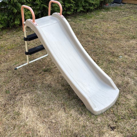 Rutschkana i grön plast. Passar för montering på lekställning eller som fristående rutschkana i trädgård.