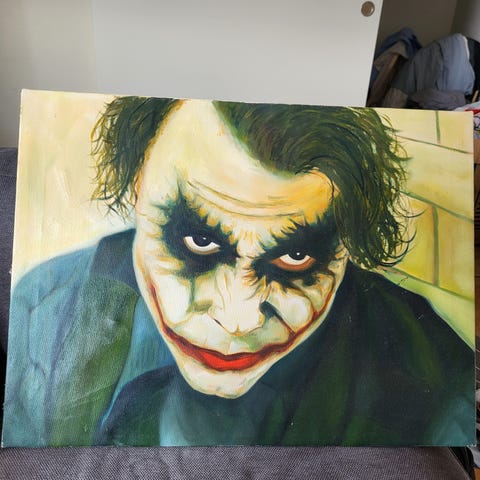 Tavla med akrylmålning föreställande Pennywise från filmen IT.Målad på pannå.Storlek 30x40 cm.