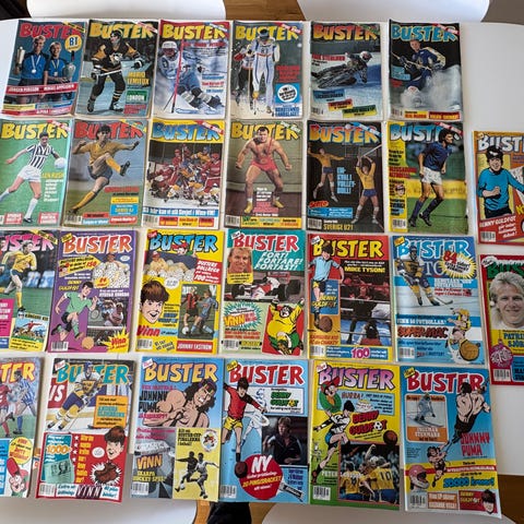 Bustertidningar, bra skick på de flesta (år och nr):