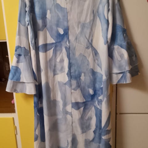 ONLY vardagsklänning i damstorlek XL. Klänningen är flerfärgad med småmönstrat tryck och är tillverkad i polyester. Modellen har rund halsringning och långa ärmar med lätt rynk vid ärmslut. Passar som vardagsklänning eller enklare klänning till olika tillfällen.