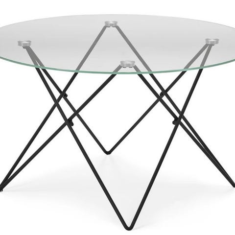 Soffbord med glas toppskiva samt kromig metall.