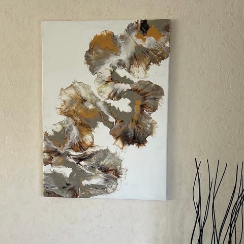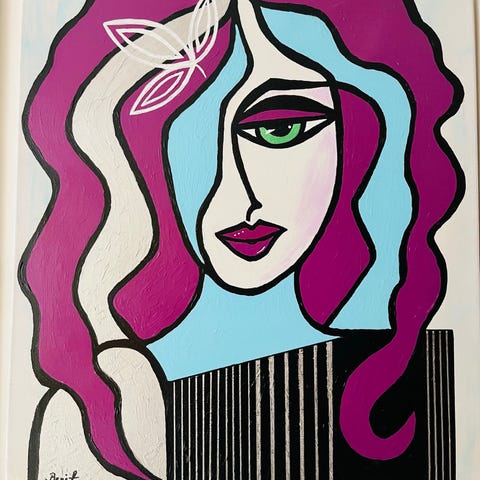 Målningen använder en begränsad och moody färgpalett i grått, svart och subtila bruna toner, med starka kontraster och tjocka, expressiva penseldrag. Den ger en känsla av mystik, ensamhet och sofistikerad elegans.