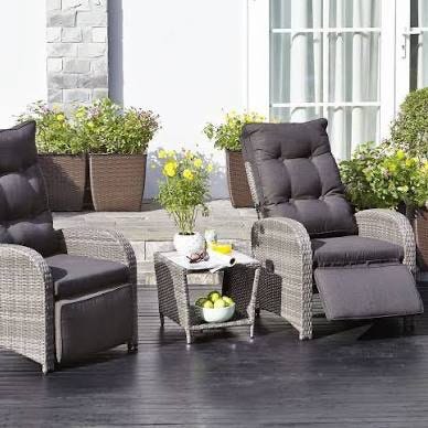 Utemöbelgrupp soffa fåtöljer bord svart med grå dynor