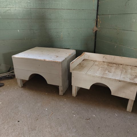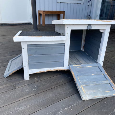Aldrig använt ser tråkig ut på grund av att den aldrig blivit behandlad. Inget ruttet .Lite färg och kärlek så blir den fin