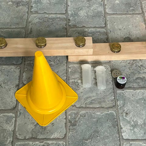 - 2 metallpinnar med runda plattor upptill för träning av framåtsändade.