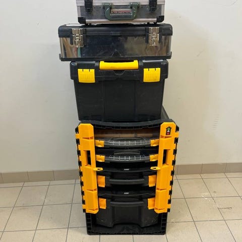 Dewalt verktygslådor / förvaringslådor. 6st går att stapla, den 7:e av äldre modell.