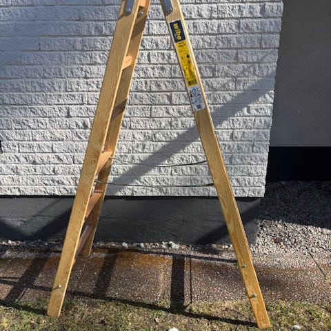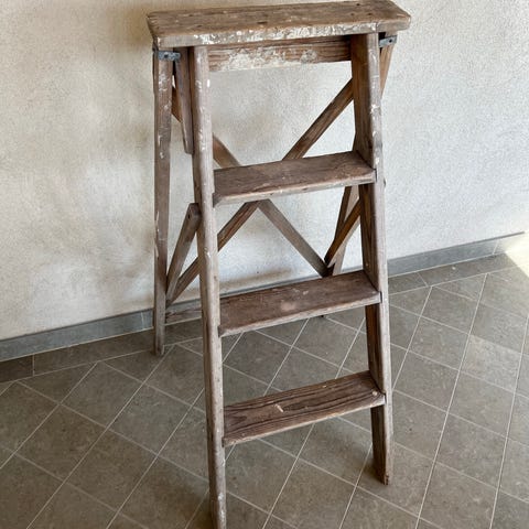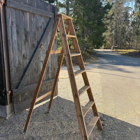 Stege i trä med flera steg, hopfällbar modell. Passar för arbete inomhus och utomhus där en fristående stege behövs, till exempel vid målning, underhåll eller enklare arbeten runt huset. Stabil konstruktion med plana steg för säkrare fotfäste. Endast avhämtning