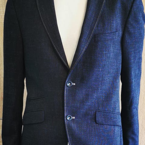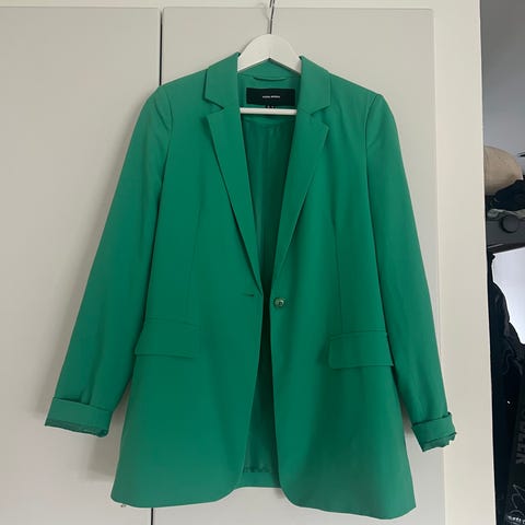 Blå kavaj. Oversize. Är Stl 38 men jag har i vanliga fall Stl 42. Så se modell på bild. Inköpt på MQ. Mycket fint skick
