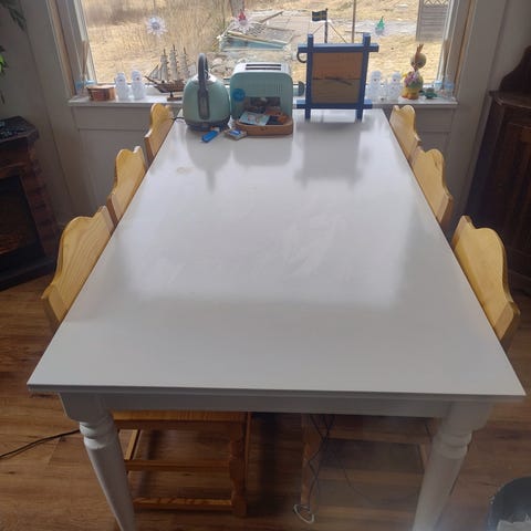 Fullt funktionellt bord från Mio som är fint och stadigt men som skulle behöva ett nytt lager färg.