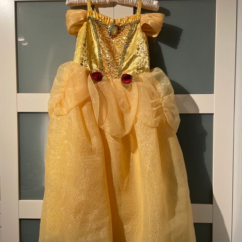 H&M utklädnad för flicka i storlek 140. Dräkten är flerfärgad och består huvudsakligen av polyester. Framsidan har en vadderad enhörningsfigur med ben som hänger ner, samt detaljer i rosa och guld. Plagget är ärmlöst upptill med vitt tyg och har fastsydda vingar på ryggen. Passar som maskerad- eller lekdräkt för barn i åldersspannet som motsvarar storlek 140 enligt H&M:s storleksmärkning.