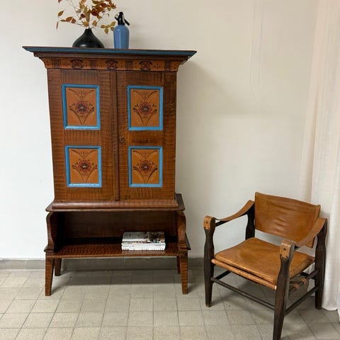 Antikt skåp kallas även renässans buffe. Flera skåp med hyllplan. Fint utskurna sniderier. Köpt i Småland på 50-60 talet. Troligtvis från början av 1900-talet Storlek 180 cm längd, höjd 195 cm och djup 60 cm. Kan skicka bättre bilder om ni kontaktar mig. Skåpet står på låga utsirade ben.