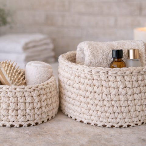 En liten förvaringslåda och två små försvaringskorgar
