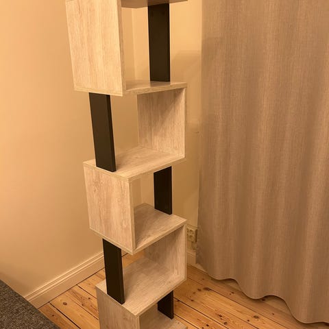 Hans J Wegner hylla i trä med flera öppna hyllplan. Passar för förvaring av böcker, pärmar eller andra föremål i exempelvis vardagsrum, arbetsrum eller hall. Enkel, rak design med synlig trästruktur. Massiv ek i kanter. Fot i polerad aluminium. 60x35x210 cm bag.
