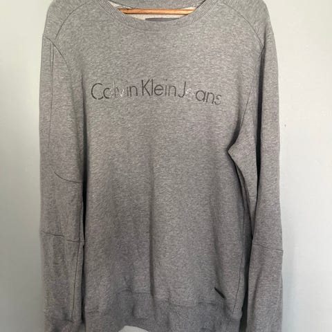 Säljer en grå calvin klein sweatshirt, bekväm och stilig, storlek M.