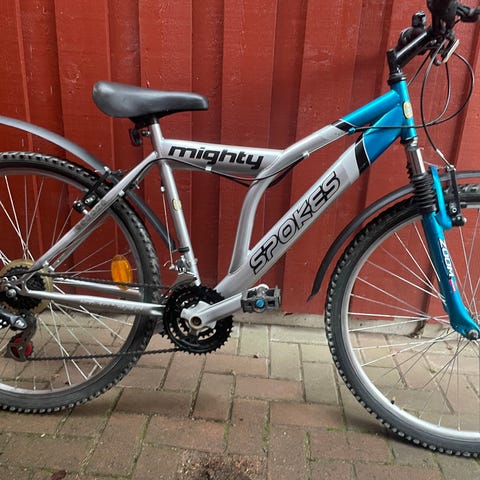 Nishiki mountainbike för unisex med ramstorlek S och 26" hjul. Cykeln har framgaffel med dämpning, raka styre och utanpåliggande växlar. Passar för vardagscykling och lättare terrängkörning. Ram i metall med traditionell herr-/unisexgeometri och fälgbromsar fram och bak. Sadel och styre är justerbara för att anpassa sittställningen efter cyklistens längd.