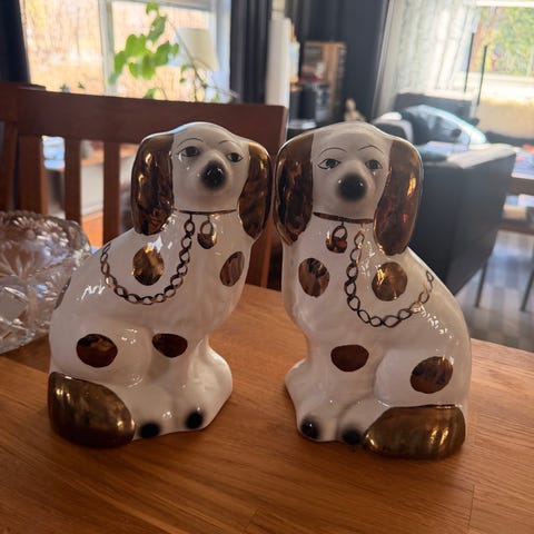 Porslinsfigurer elefanter och figur med barn vit flerfärgad