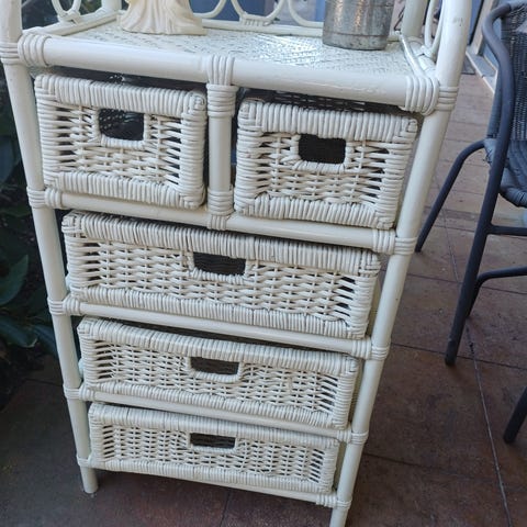 Byrå i rotting, tre lådor. Måtten är B 46, H 74, D 33 cm