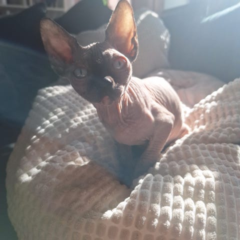 Hon är inte helt naken utan har som ett litet fjun över kroppen vilket gör att hon är otroligt len att klappa.