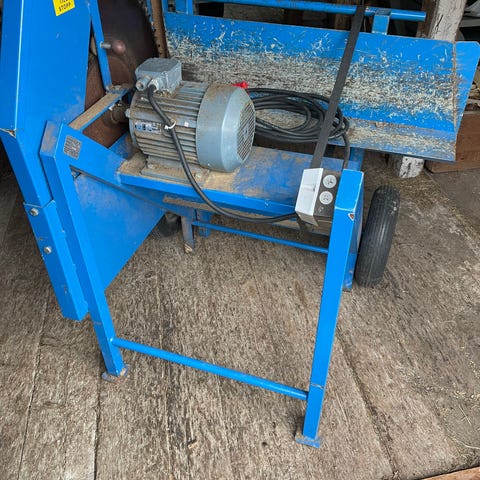 Foxes vedklyv i blå färg. Hydraulisk konstruktion med tvåhandsgrepp och kontrollpanel placerad vid manöverdelen. Maskinen är avsedd för klyvning av ved och har stabil stålkonstruktion med stödben och klyvkil framtill. Passar för användning vid förberedelse av ved för uppvärmning och liknande ändamål. Inköpt 29 /12 2025 inkl Fyrklyvskniv Faxes till. GARANTI kvar inköpt Granngården