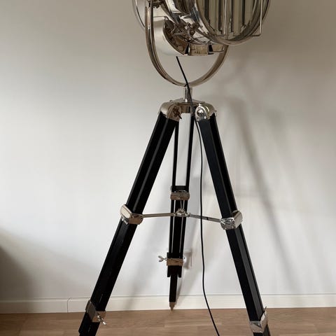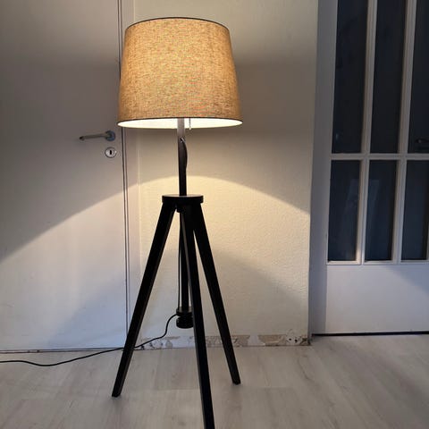 Varsam använd lampa i Newport stil från Newport butiken med mörkbetsade ben. Skärmen är hel men några små fläckar.