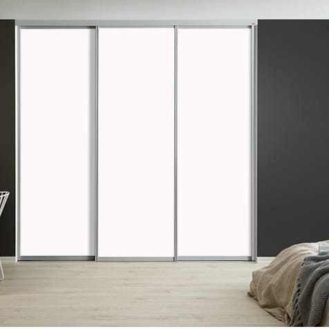 Elfa Artic vit med Brons färgade profiler 2 dörrar öppnings höjd 2390mm öppnings bredd 2120mm mjukstängande med integrerad ledbelysning i skenan ord pris 16815:-