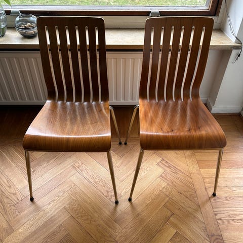 Från Living i Malmö! Använda som extrastolar! Fint skick, stapelbara! Pris för båda!