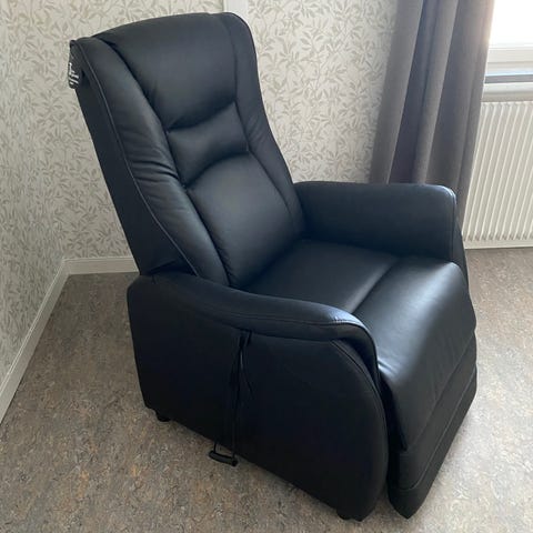 Säljer en riktigt skön eldriven reclinerfåtölj med lyftfunktion. Perfekt för dig som vill sitta bekvämt och enkelt kunna resa dig upp. Fåtöljen har steglös justering av ryggstöd och fotstöd med smidig handkontroll. Klädd i slitstarkt grått tyg (Lacy grå). Stabil och trygg konstruktion, bekväm att sitta i både för vila, TV‑tittande och läsning. Ett märke finns på sittdynan därav det lägre priset.