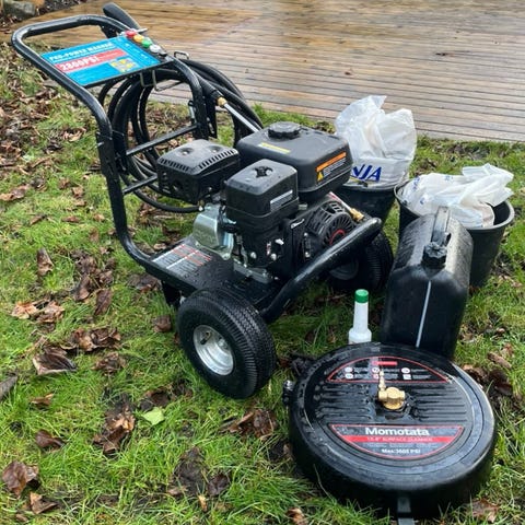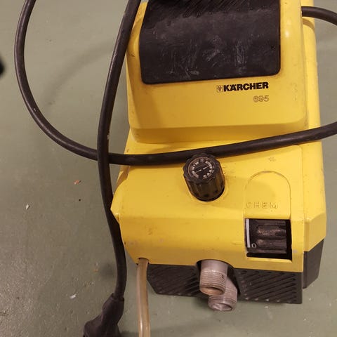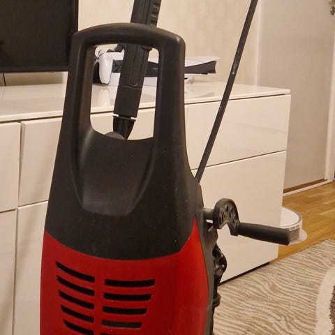 Högtryckstvätt med integrerad slangvinda och flera munstycken. Utrustad med högtryckspistol, olika spraymunstycken för varierande spridningsbild, borste samt högtrycksslang. Passar för rengöring av exempelvis uteplats, fordon och trädgårdsutrustning. Tryck- och vattenflöde samt rengöringsförmåga framgår av produktens specifikationer hos tillverkaren eller återförsäljaren.
