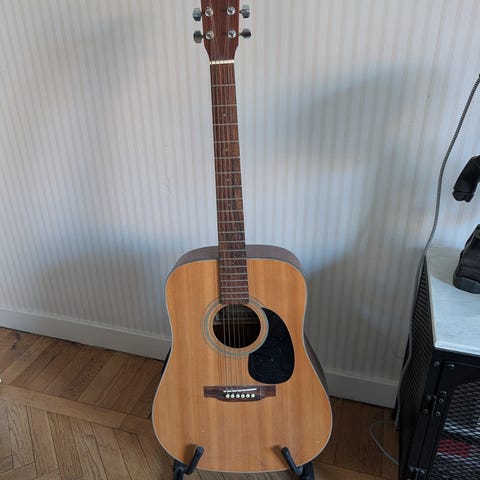 Fin akustisk Tokai. Samma storlek och trä specs som en Martin 00-18. Låter och spelar fint. Kommer med hardcase. Byggd i Japan från 1996.