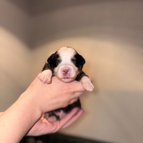 Hon älskar människor och blir otroligt glad vid besök, ganska stissig men lägger sig snabbt ner och vill bli kliad på magen av alla hon möter. Otroligt charmig och lätt att älska.