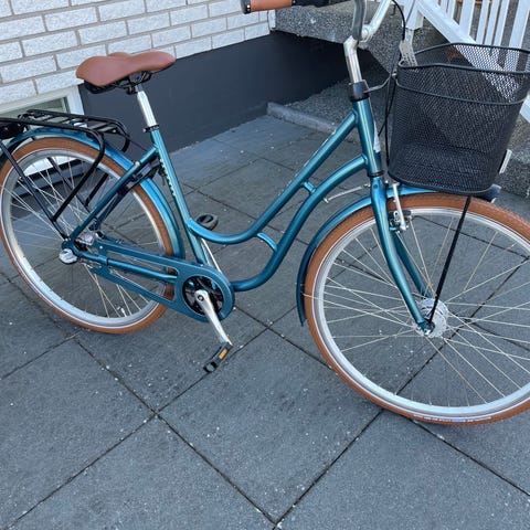 Perfekt stadscykel för pendling, handling eller lugna turer. Bekväm upprätt sittställning och stabil att köra.