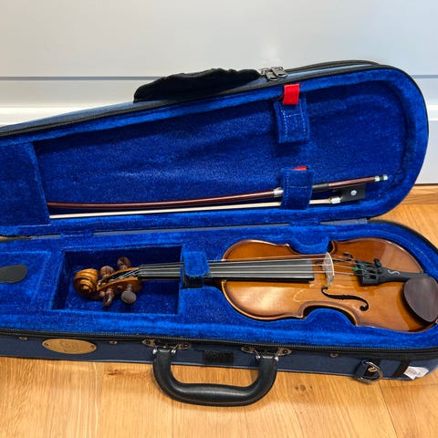 Till salu: en original Josef Lidl fiol (4/4 fullstorlek) från Brno, Tjeckien, med originalfodral och stråke. Instrumentet är troligen från mitten av 1900-talet och har inte spelats på många år. Den är orestaurerad och har åldersrelaterade bruksspår (se bilder). Strängar och stråkhår bör bytas eller renoveras innan spel. För samlare, älskare av historiska stråkinstrument eller som renoveringsprojekt. Fodral med blommigt tyg invändigt och fungerande lås medföljer.