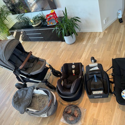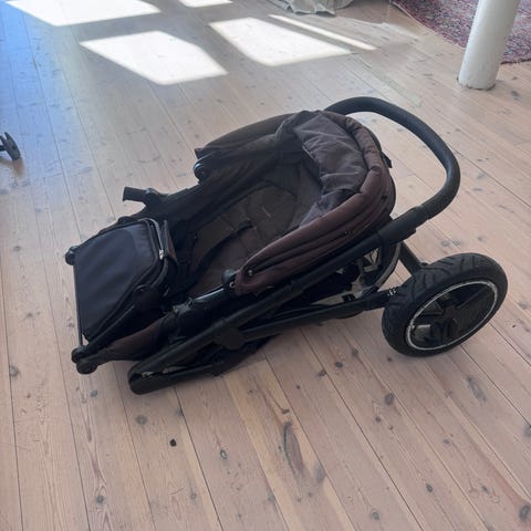 Otroligt enkel och smidig barnvagn där Babyskyddet kan fästas på vagnen med andra fästen och när sittdelen är på går det att smidigt fälla ihop vagnen.