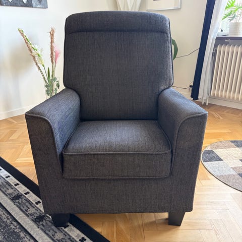 Säljer nu ännu ett av mina impulsinköp, till mannens stora förtret. Fåtölj inköpt i somras i syfte att användas som amningsfåtölj. Det blev inte så utan den har nu stått i ett hörn i åtta månader som avlastningsyta. För mer information om fåtöljen med finesser följ länken till vidaXLs hemsida. Nypris 4000:-, så massagefunktionen är ju därefter, det är mer vibrationer än massage. Uppresningsfunktionen guld värd dock! Ett helsike att montera så passa på om du vill ha en sådan här men slippa sätta ihop skiten. Katt finns i hemmet men dom har inte legat i fåtöljen pga att den varit belamrad med skräp, också legat en filt i för extra skydd. Finns och hämtas i Kalmar, smidig affär premieras, förbehåller mig rätten att välja köpare utifrån det! Mitt pris 2500:-.