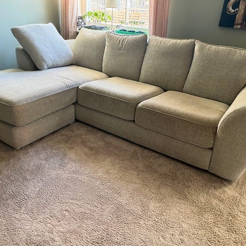 Superfin soffa ifrån ikea i en beige färg. Köptes 2023 i oktober men är väldigt sparsamt använd, någon liten fläck finns men det går bort i tvätten. Djur och rökfritt hem, finns att hämtas i Falun, måtten är 186cm bred och djup är 99cm☺️