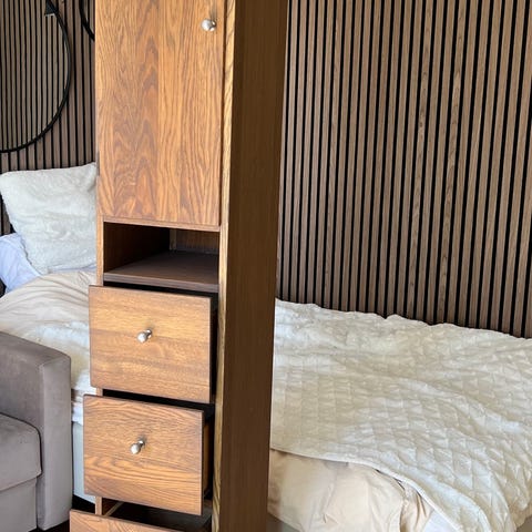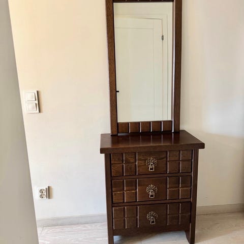 Byrå i ek 3 lådor 100cm. Bred 80 cm. Hög 50 cm. Djup