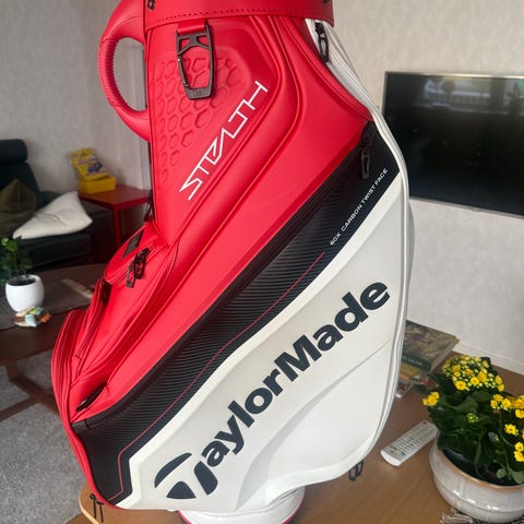 TaylorMade tourbag i svart och rött.