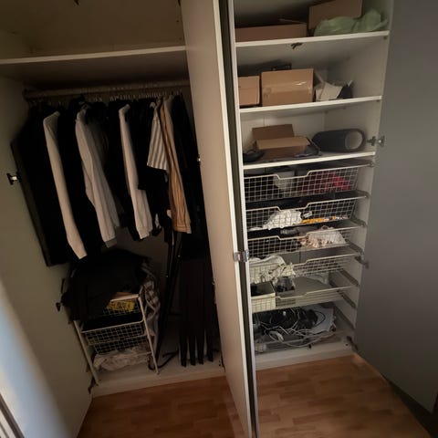 Skåpen står på första våningen och går lätt att bära ut som de är. Det är gott om plats i både lägenheten och trapphuset, så det ska inte vara några problem. Har du en stor bil slipper du montera ner dem 😊