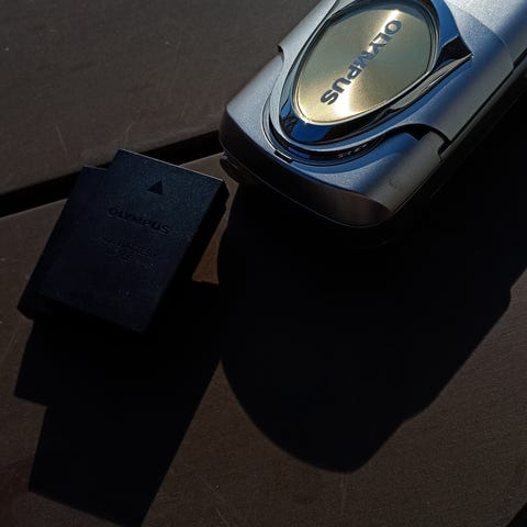 Blixt (Olympus), laddare till kameran, extra batteri samt axelväska ingår.