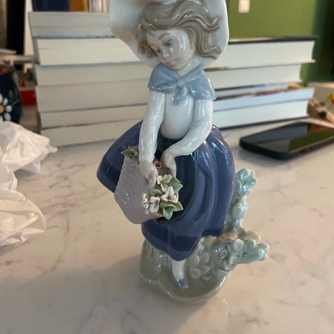 porslinsfigurer i vit ton. Två figurer föreställande sittande respektive krypande änglabarn med detaljerade vingar och kläder.