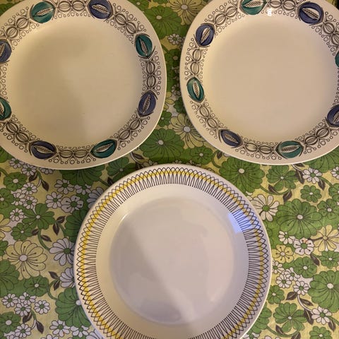 Blandat parti antikt och retro porslin från Rörstrand, Gustavsberg och Uppsala Ekeby. Serierna Citron (2), Mullbär (4), Krasse (4), Pigg (2)och Flora (6) ingår. Skick varierat där krackelering i glasyr och viss missfärgning förekommer. Har inte hittat större sprickor eller nagg som kan påverka funktionen av porslinet.