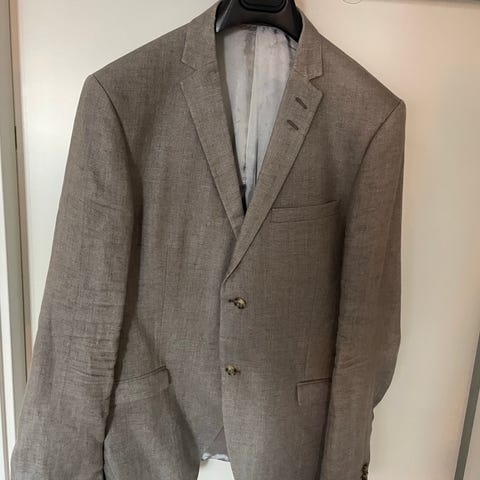 Armani kostym för herr i storlek 54. Kostymen är grå och tillverkad i ullblandning enligt materiallappen. Klassisk modell med kavaj och matchande byxa, fodrad insida och flera fickor. Passar för formella tillfällen, arbete eller andra sammanhang där en hel kostym önskas.