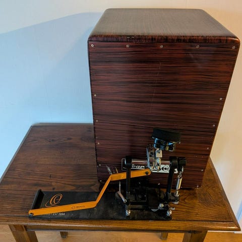 Valter Percussion cajon i trä med naturfärgad finish. Slagtäcket är skruvat på framsidan och baksidan har rund ljudport. Instrumentet levereras med vadderad svart bärväska med handtag och ytterfack. Passar för slagverksspel i olika musikstilar och ensemblesammanhang.