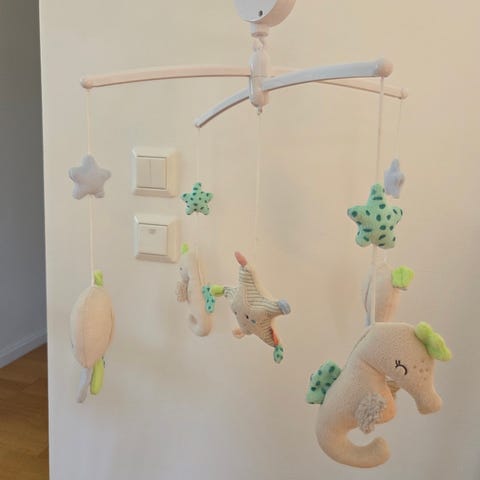 Har fem melodier Tre timerinställningar Kan användas för att somna ett barn