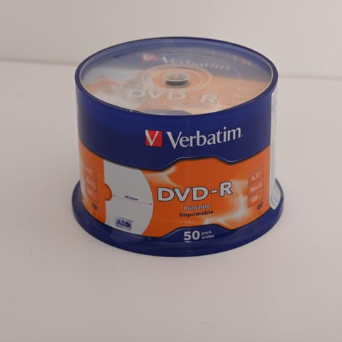 Verbatim BD-R 25 GB 6x skivor i 50-pack. Inspelningsbara Blu-ray-skivor med lagringskapacitet på 25 GB per skiva och maximal skrivhastighet på 6x. Lämpliga för lagring av högupplöst video, backup av data och arkivering av filer som kräver större utrymme än vanliga dvd-skivor.