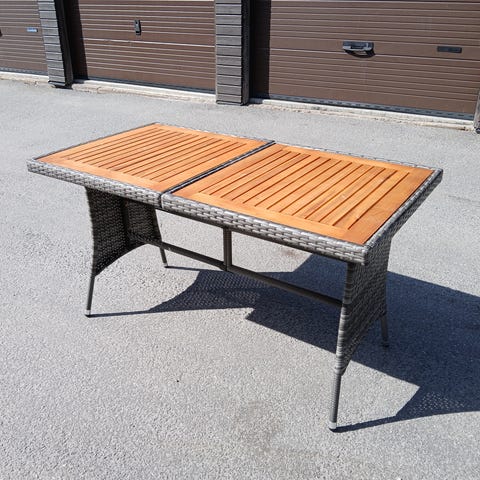 Rektangulärt matbord för utomhusbruk. Passar som utebord på altan, balkong eller i trädgård.