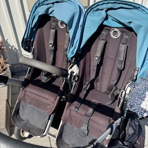 En jättefin vagn, väl omhändertagen, ej solblekt och rengjord inför försäljning. Går att använda som dubbel syskonvagn eller singelvagn med sidokorg - en perfekt vagn att växa med!