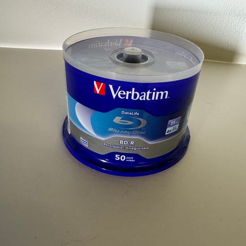 Verbatim DVD-R skivor med 4,7 GB lagringskapacitet och upp till 16x skrivhastighet. Spindel med 50 inspelningsbara DVD-R skivor, lämpliga för lagring av data, video och andra digitala filer. Standard DVD-format (12 cm) för användning i kompatibla DVD-brännare och DVD-spelare som stödjer DVD-R.