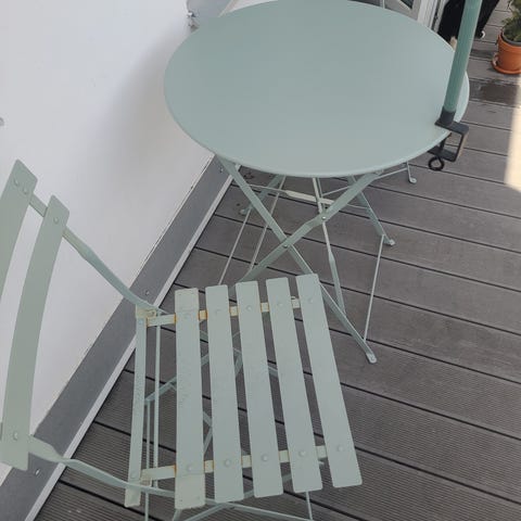 Jasper Morrisson/Magis Air table + Air chair (2 stycken) säljes. Bra skick, dvs. hela och rena men har stått ute och blivit algangripna (särskilt bordsskivan enl foto).