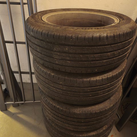 från min gamla Volkswagen passat. Jag vet inte mycket om däck. Allt jag vet är att de sällan har använts.